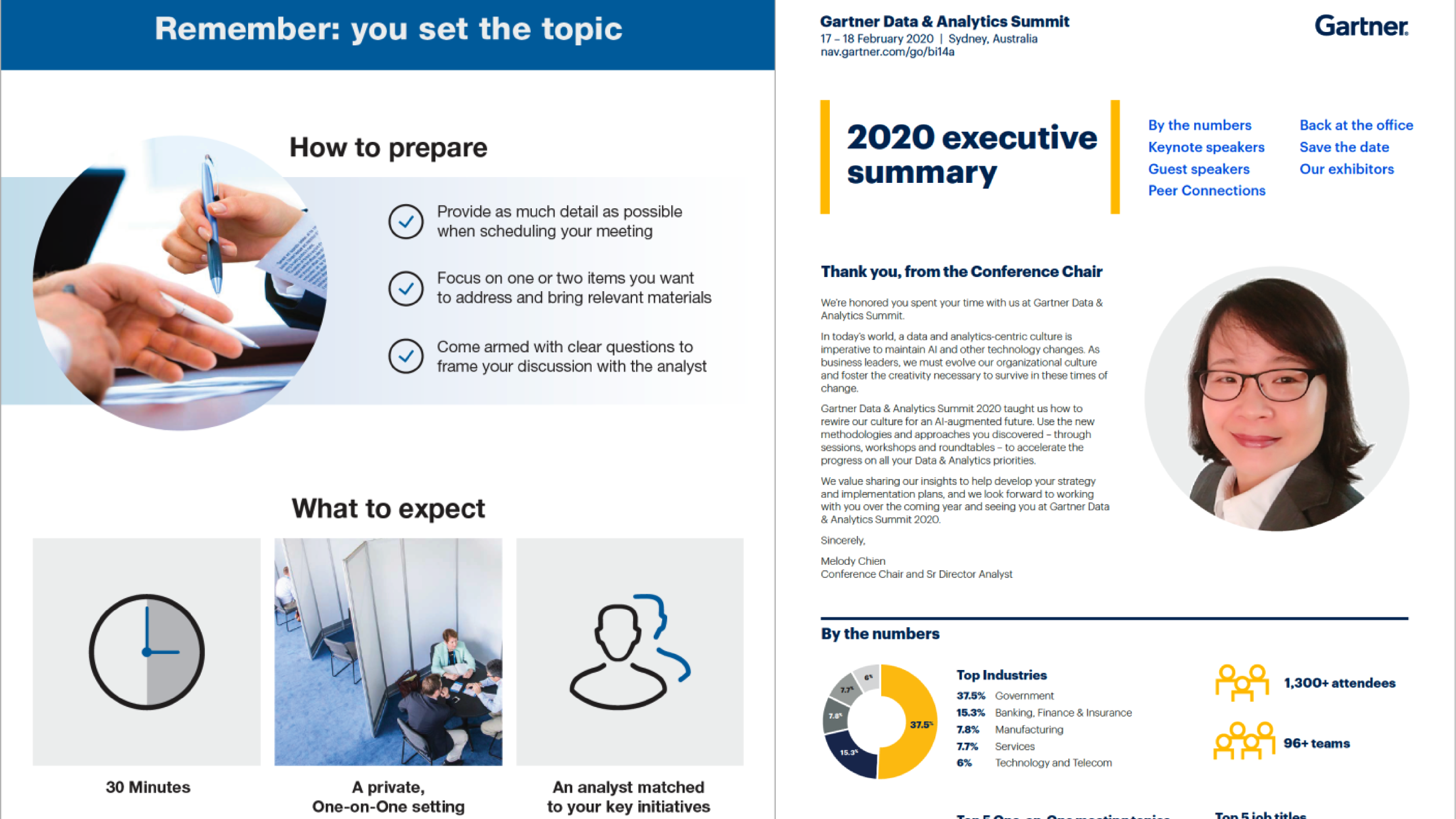 Gartner Events Navigator infographic and Executive Summary for Data & Analytics Summit, interactive pdf