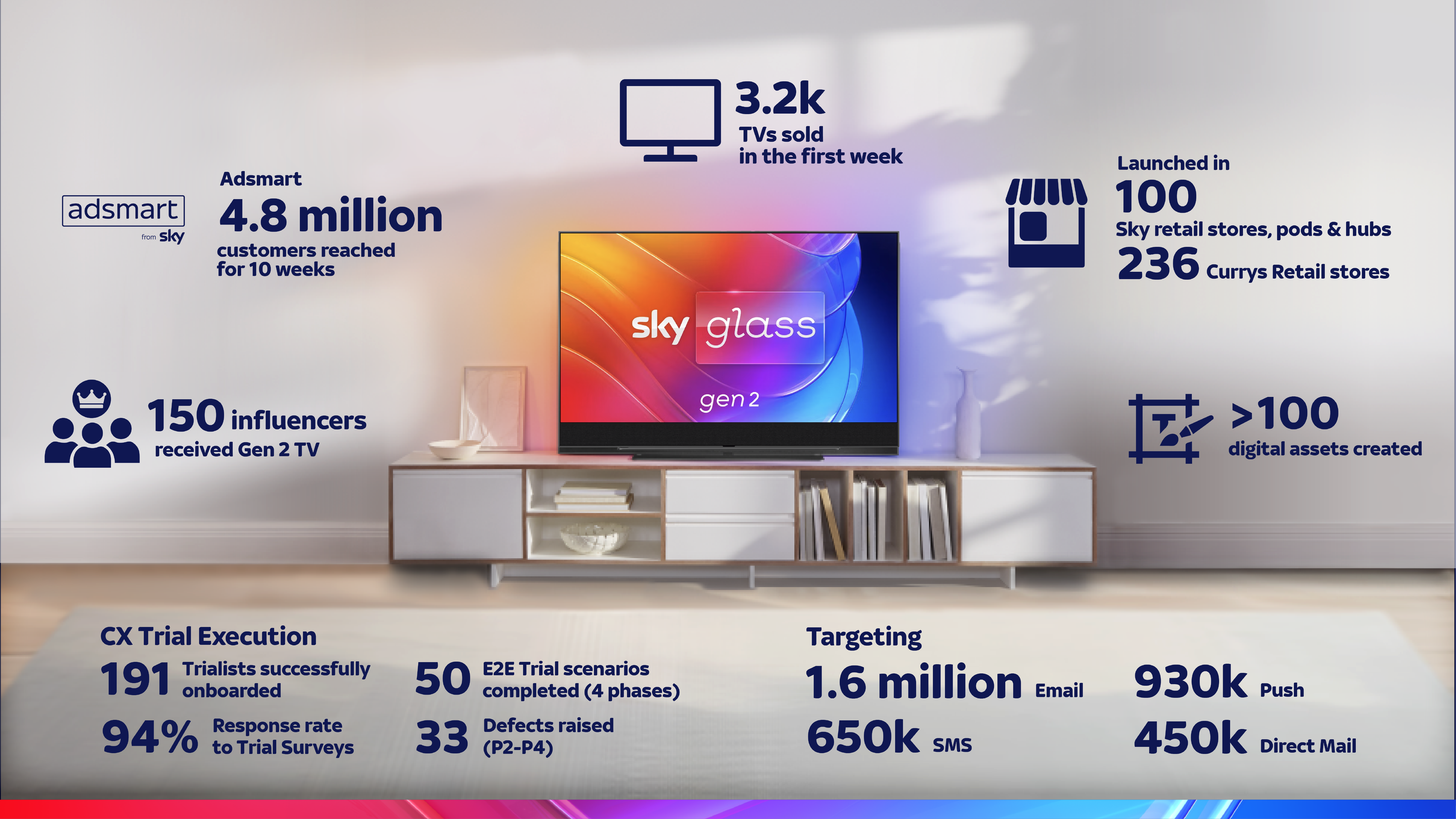 Sky Glass Gen 2 infographic for Sky Technology’s achievements